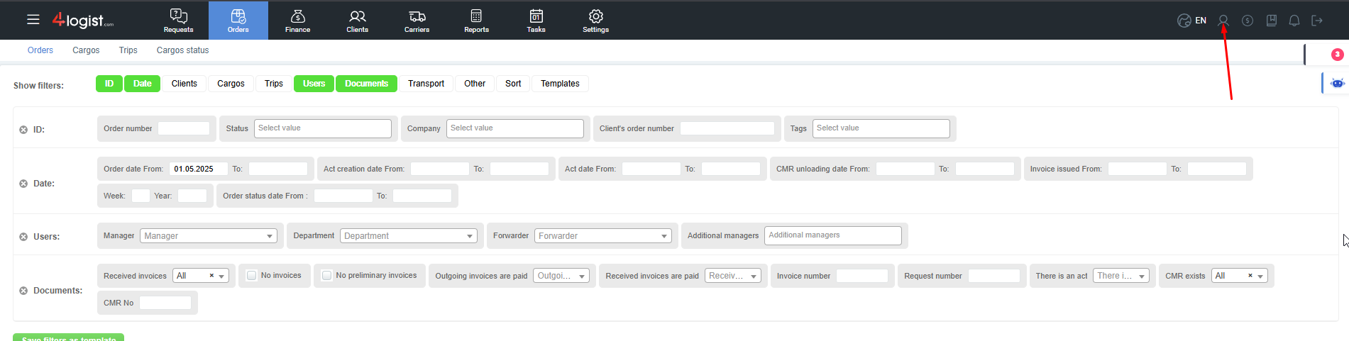 User Billing Account in 4logist