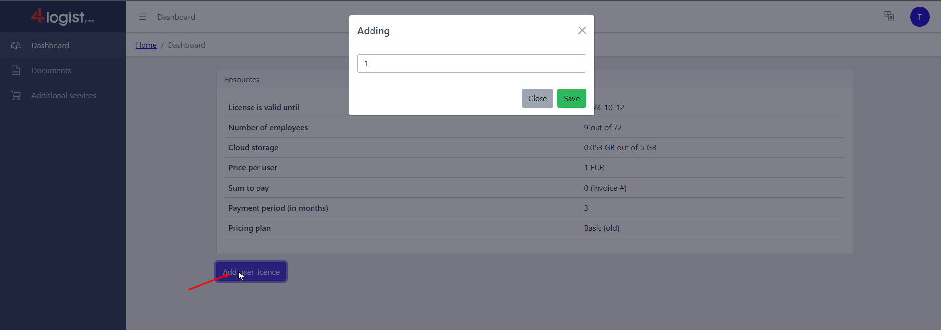 In the window that opens, specify the number of licenses you want to add and save the changes.