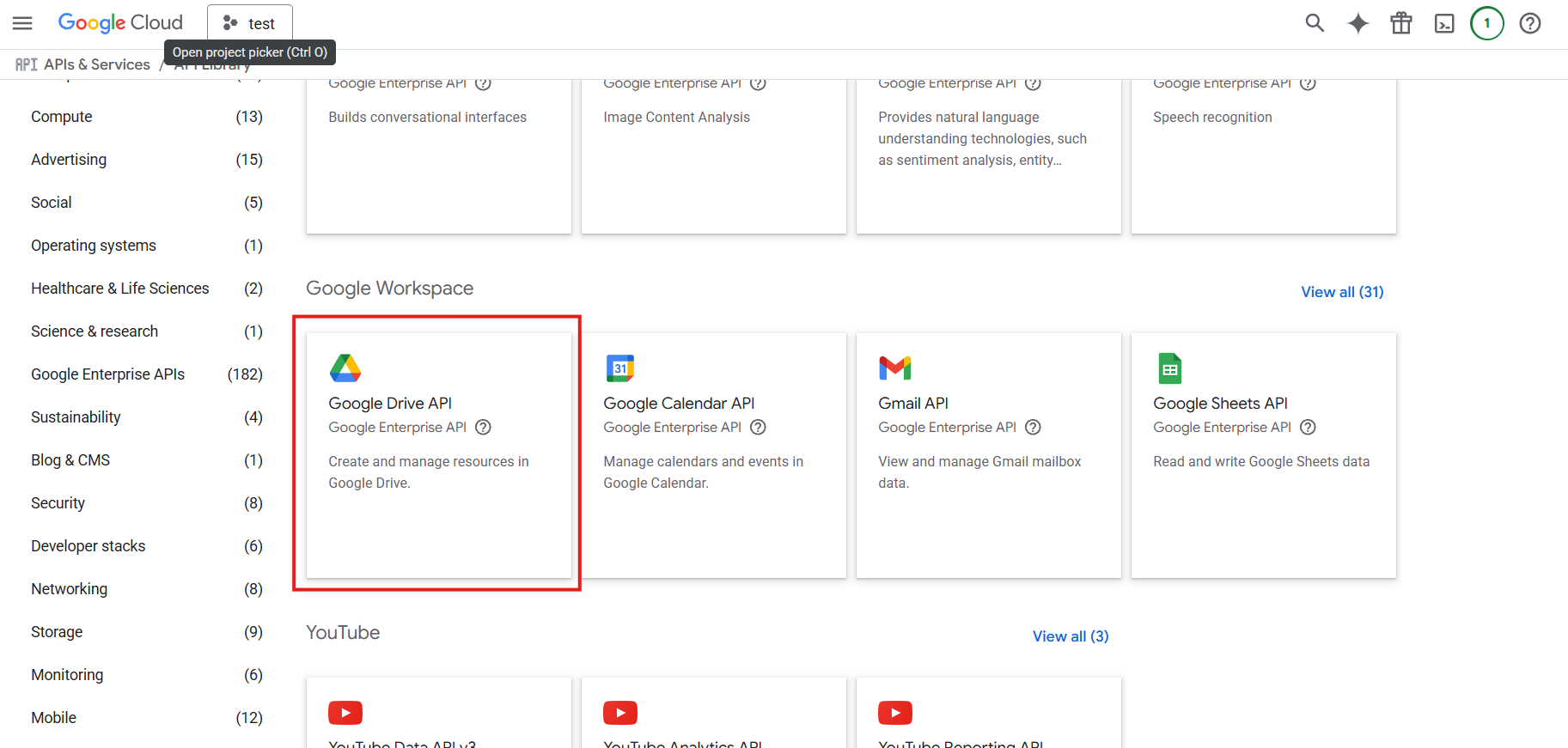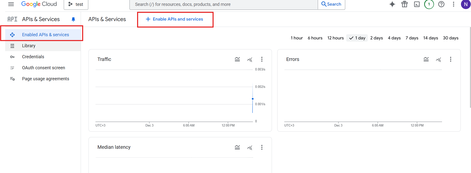 14. Найти в консоли в ваш проект и нажать Enabled API`s & Services