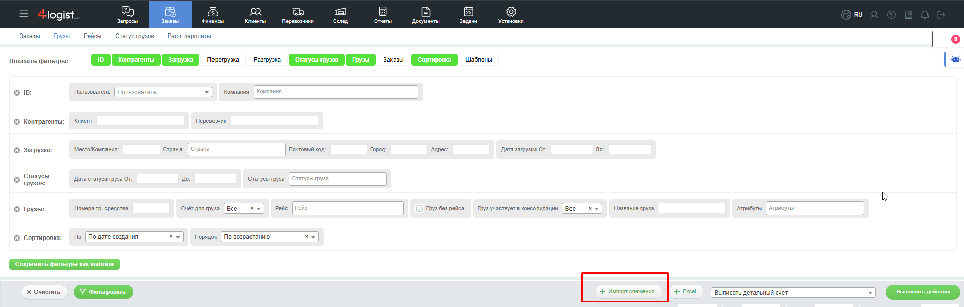 Эта опция позволяет массово загружать актуальные статусы грузов в систему с помощью импорта.