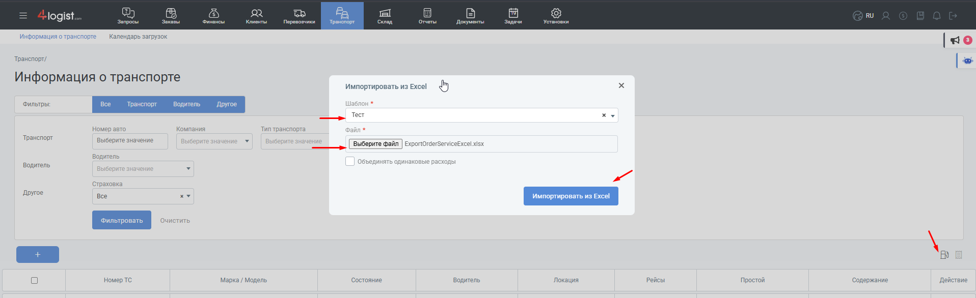 Массовый импорт расходов на рейсы из файла excel