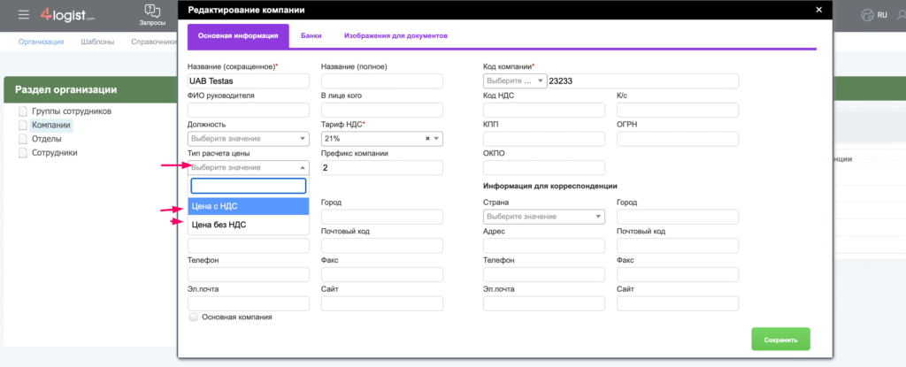 - Порядок расчета будет зависеть от того, какой тип расчета цены выбран у вас в карточке компании: Установки — Организация — Компании