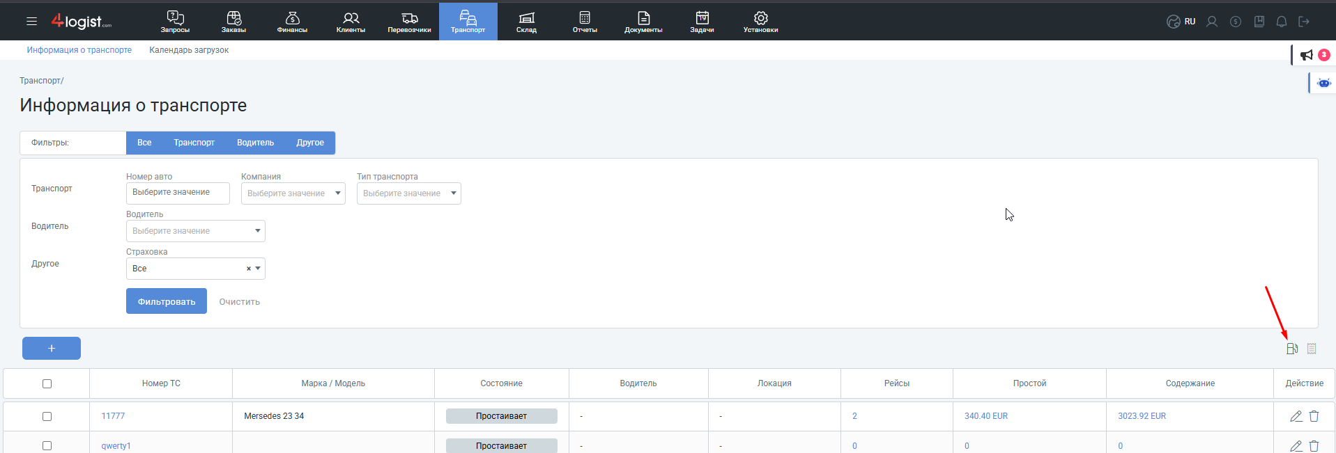 Функционал находится в разделе «Транспорт».