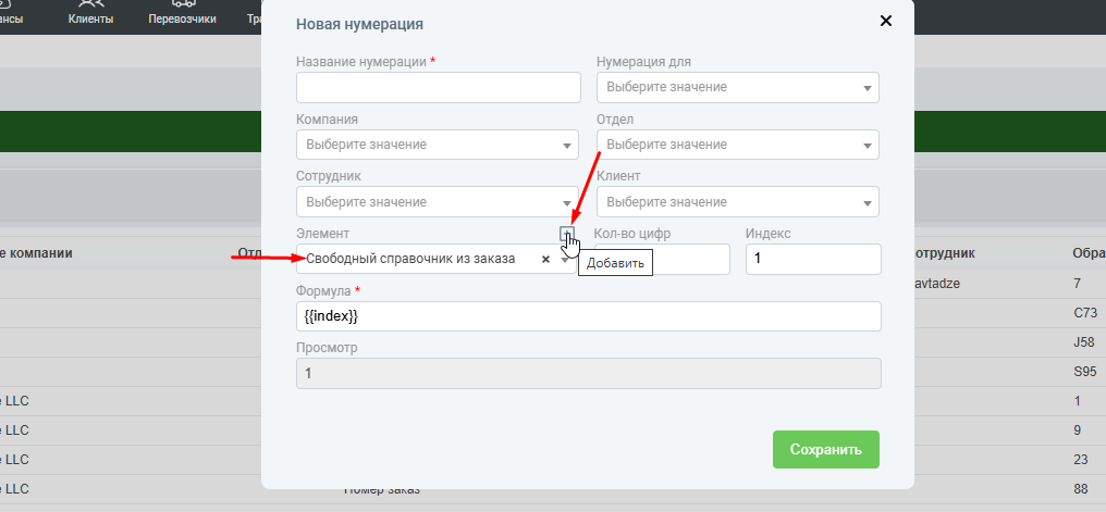 В системе появилась возможность использовать значения из свободного справочника формы создания заказа при настройке нумерации заказов.