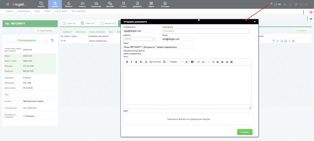 После подготовки документов можно открыть значок конверта с цифрой, чтобы увидеть список всех выбранных к отправке файлов. Здесь можно проверить адресата, тему письма и при необходимости добавить комментарий. Нажатие кнопки «Отправить» отправляет все документы на указанные адреса через настроенную почту.