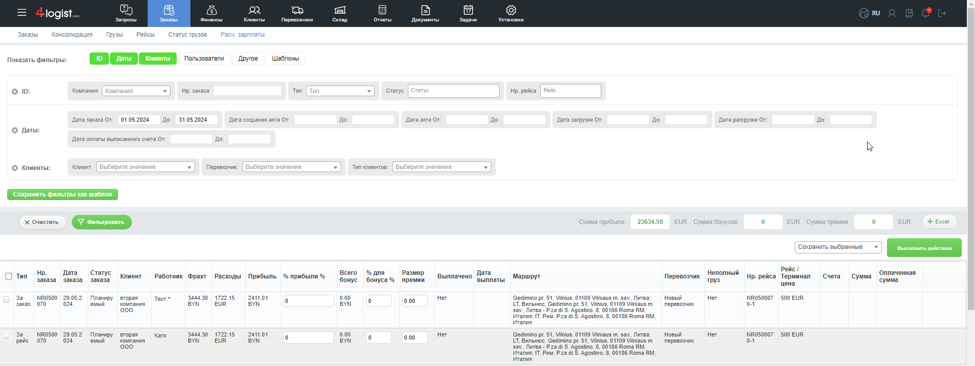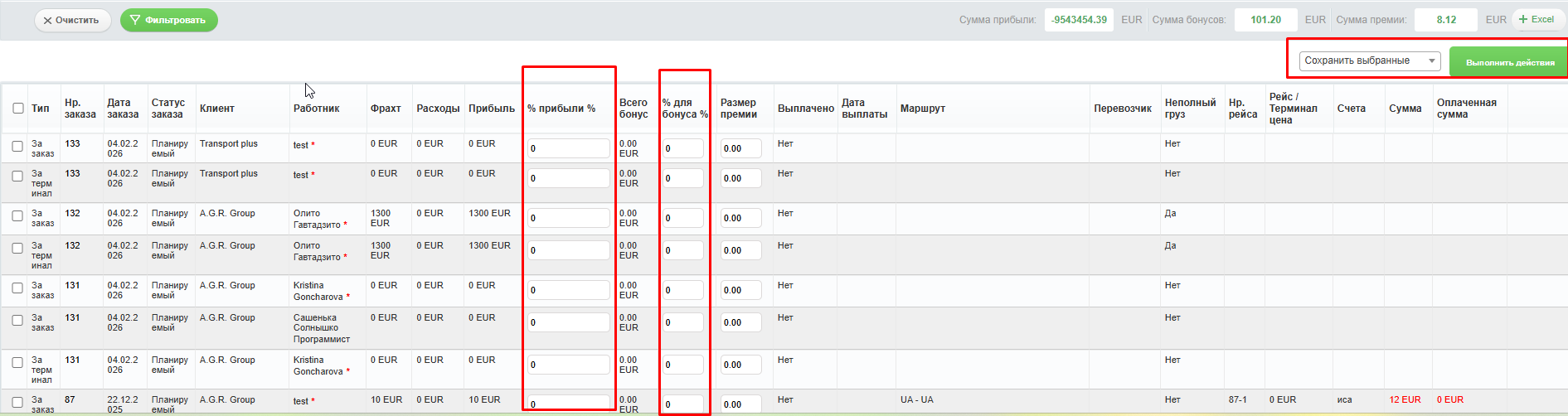 2) Те пользователи, кто участвовал в создании рейса — экспедиторы. Бонус с типом «За рейс»