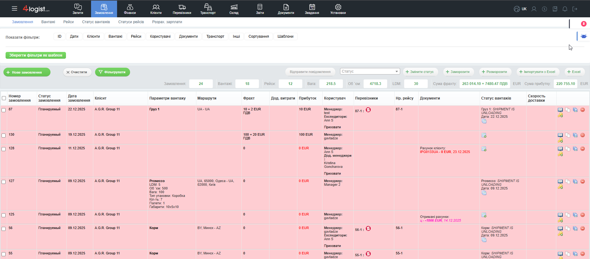В данной статье основной акцент сделан именно на таблицу заказов, отображаемую в 4logist.