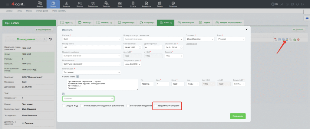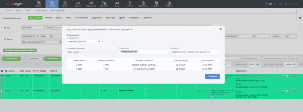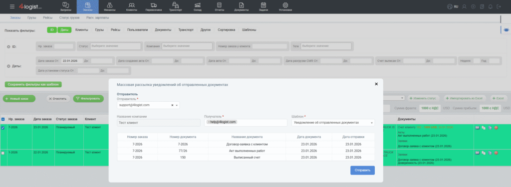Если у вас этот функционал не работает, напишите пожалуйста нам в поддержку, на почту help@4logist.com