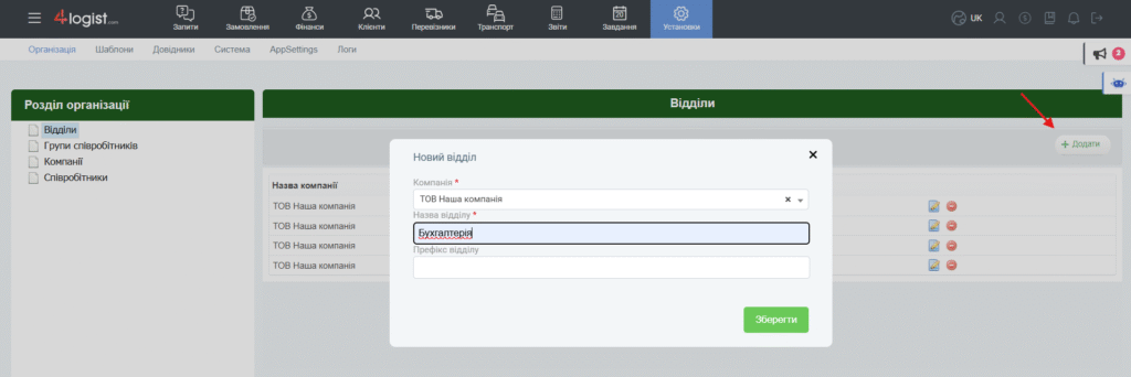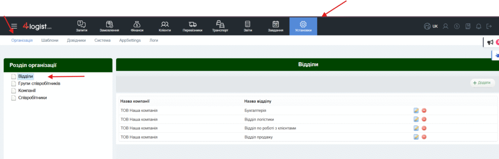 Цей розділ дозволяє об’єднувати користувачів у Відділи, які є у вашій компанії. Надалі відділи будуть використовуватися під час налаштування прав доступу для співробітника.