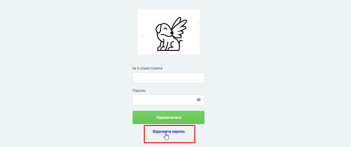 - На головній сторінці входу до вашої бази натисніть «Відновити пароль». Введіть пошту, яку вказували у профілі користувача в системі (скоріш за все ваша особиста пошта)