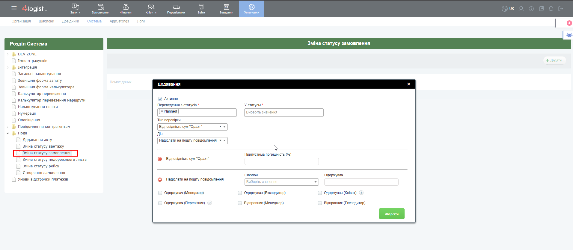 Після збереження перевірки рекомендуємо перейти до замовлення і перевірити зміну статусів без дотримання перевірки. Якщо все налаштовано правильно, то при зміні статусу система видасть помилку.